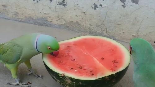 3. 鼓励表扬:当鹦鹉第一次尝试吃瓜时,要及时表扬,增强它的自信心。